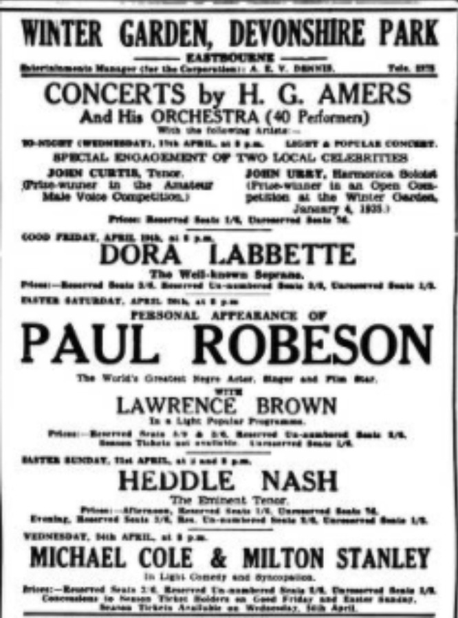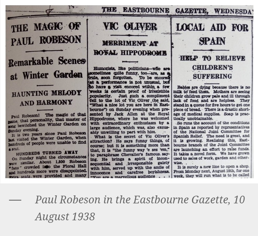 Paul Robeson, the legendary black American socialist, singer and film star Paul Robeson performed in the town in the late 1920s and throughout the 1930s. Find out more in this article on Engels in Eastbourne website, Brighton University.