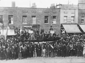 A passing reference to the Bryant and May Match Girl Strike of 1988; the 1889 London Dock Strike; The Hyndman Procession AKA The West End Riots. (See more in this Australian newspaper article).
